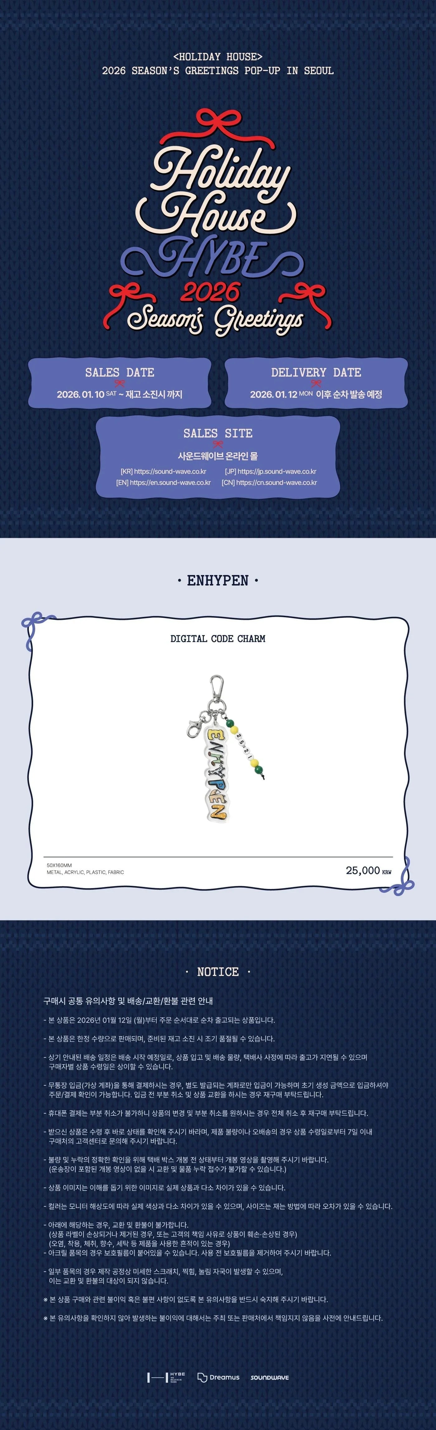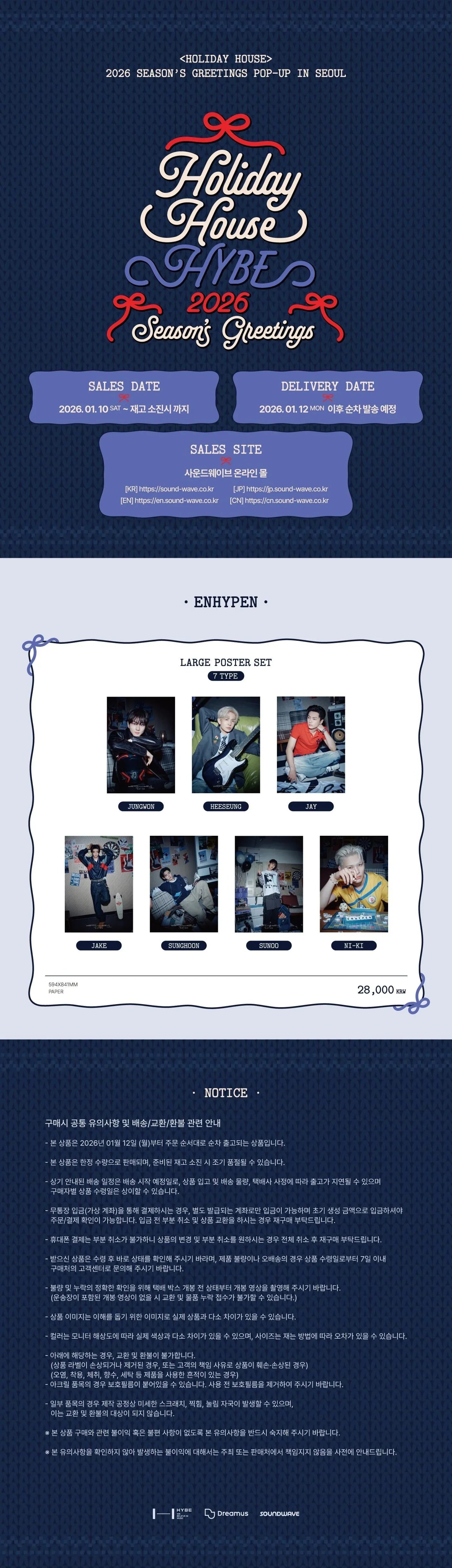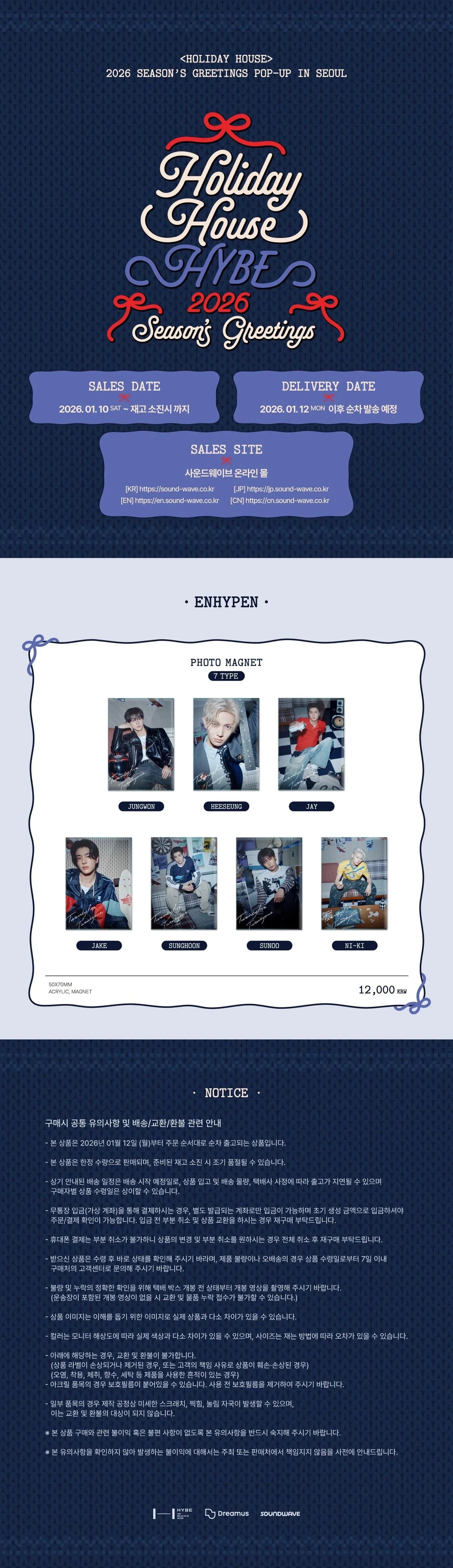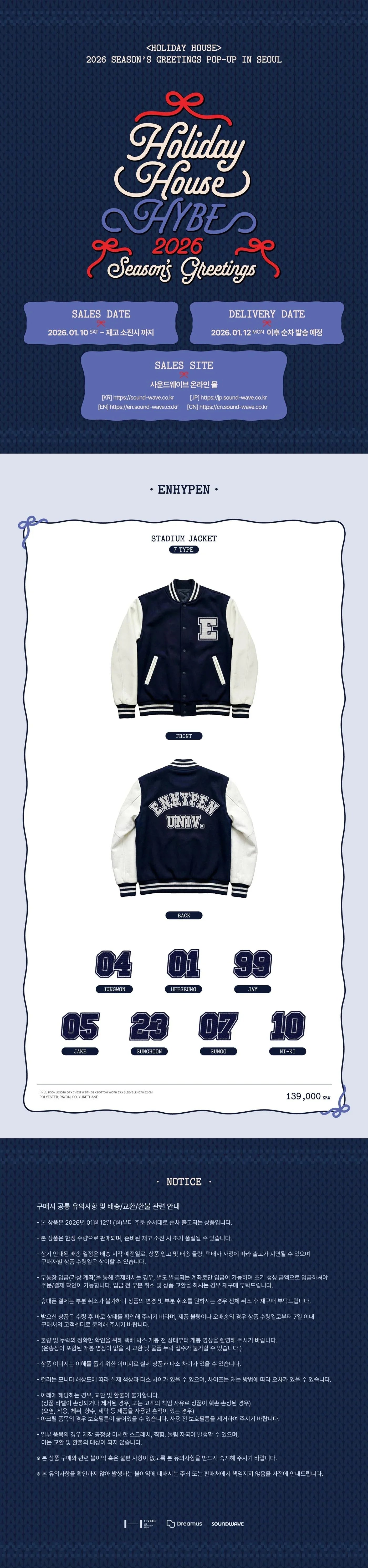 Merchandise from ENHYPEN’s [HOLIDAY HOUSE] 2026 Season’s Greetings is available in the following items: