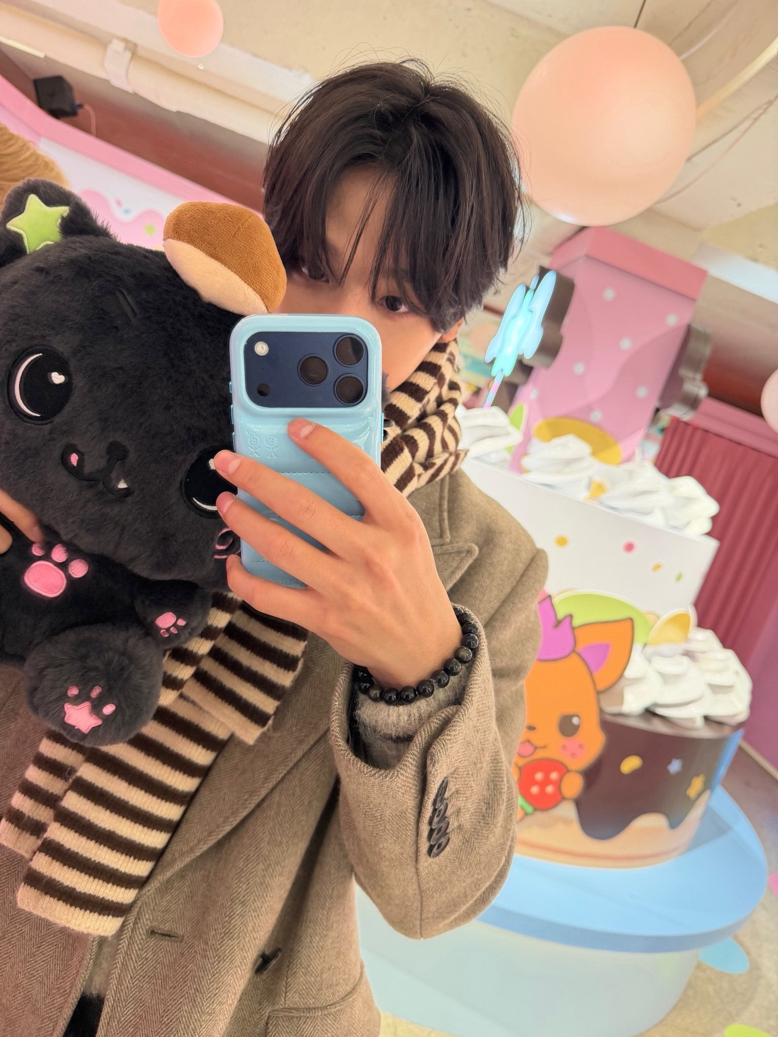 A brown striped muffler selected by NCT WISH’s RIKU.